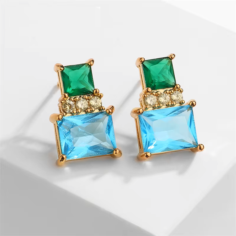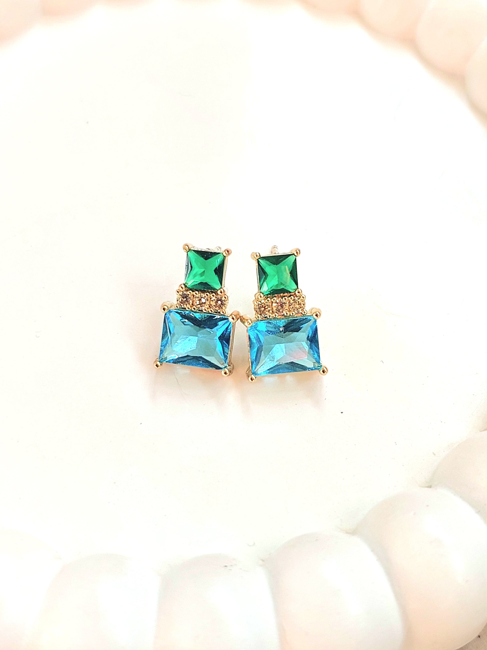 18k Gold Plated Rectangle CZ Designer Ear Studs